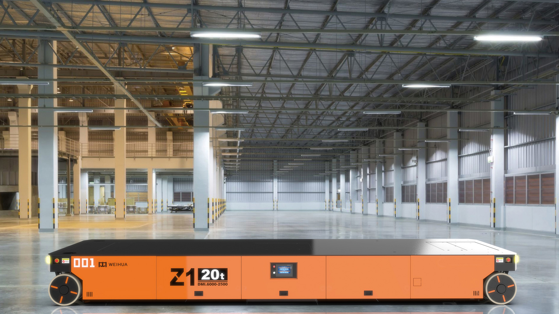 Z1-20t 型重載 AGV,可提供單車 20t 的負(fù)載能力,具有原地轉(zhuǎn)彎和橫移功能,特別適合用于大尺寸、大噸位工 件的運(yùn)輸。可在瀝青、自流平、混凝土地面上運(yùn)行,具有很強(qiáng)的地面條件適應(yīng)能力。由于其自身具有整車自頂升 功能,除可用于直接承載工件外,還可通過鉆入工件架并進(jìn)行自頂升,托舉工件架后間接承載工件。根據(jù)用戶要 求,多 AGV 可實(shí)現(xiàn)同步聯(lián)動(dòng),用于托舉大型部件。采用 PGV+ 二維碼的復(fù)合導(dǎo)航模式全自動(dòng)運(yùn)行,也可以遙控 運(yùn)行。