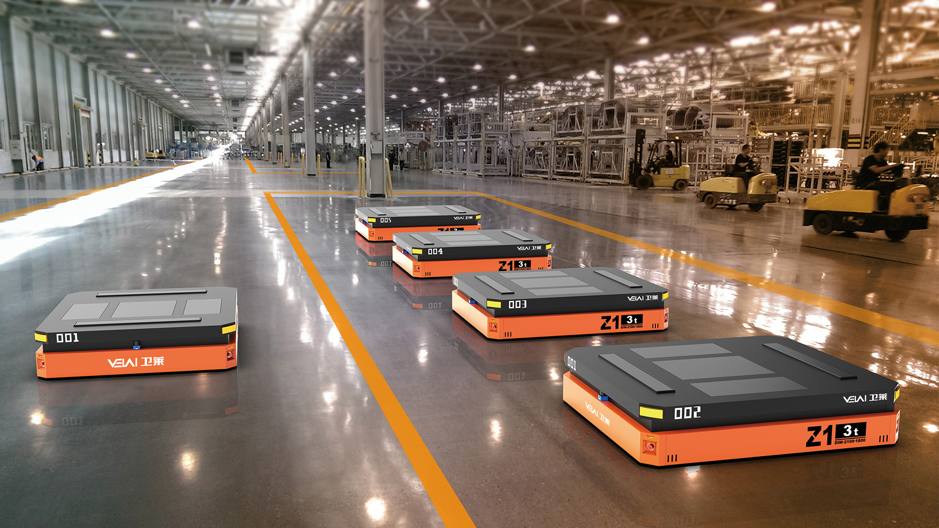 Z1-3t 型重載 AGV,可提供單車 3t 的負(fù)載能力,具有原地轉(zhuǎn)彎和橫移功能,特別適合用于大尺寸、大噸位工件的運(yùn)輸??稍跒r青、自流平、混凝土地面上運(yùn)行,具有很強(qiáng)的地面條件適應(yīng)能力。由于其自身具有整車自頂升功能,除可用于直接承載工件外,還可通過鉆入工件架并進(jìn)行自頂升,托舉工件架后間接承載工件。根據(jù)用戶要求,多AGV 可實(shí)現(xiàn)同步聯(lián)動(dòng),用于托舉大型部件。采用 PGV+ 二維碼的復(fù)合導(dǎo)航模式全自動(dòng)運(yùn)行,也可以遙控運(yùn)行。